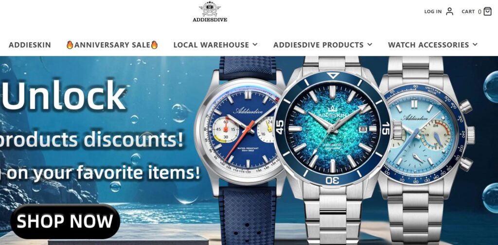 Addiesdive focuses heavily on robust dive watches with exceptional water resistance — from 200m all the way to 1000m — combined with super-luminescent dials and solid 316L stainless steel construction. They use Japanese NH35 movements as standard, ensuring reliability.