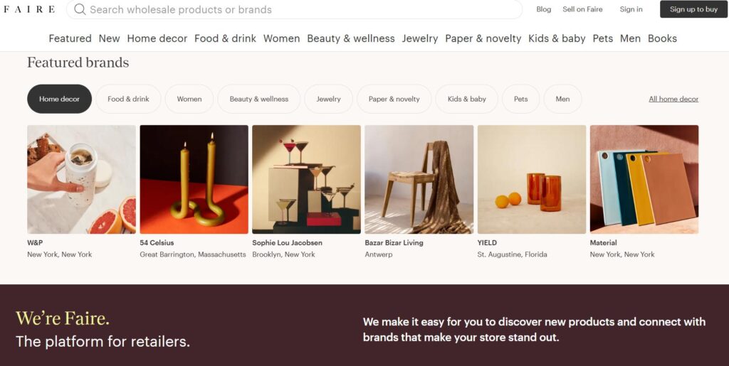 Faire is a premier B2B marketplace that connects over 700,000 independent retailers with unique, high-quality home décor brands globally. It is designed to help small businesses source curated products with minimal risk.
